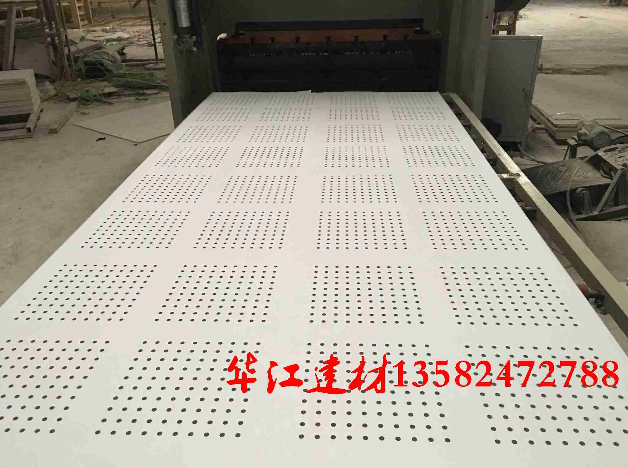 影响纸面穿孔石膏板吸声性能的主要因素是穿孔率和后空腔大小,穿孔孔径、石膏板的厚度等对吸声性能影响较小。穿孔率从2%到15%之间逐渐增大时,孔占的表面积增大,空气分子进入共振腔体参与共振的几率增加,吸声能力增大,若后空腔内放入吸声材料,吸声更强烈。穿孔率会影响共振频率,穿孔率增大,共振频率将向高频偏移,偏移量与穿孔率的开根号成正比。穿孔率增大,吸声频率特性曲线的“山峰”将向右侧(高频)移动,且“山峰”形态整体趋于抬高,平均吸声系数增加。增大穿孔率可以提高吸声性能,但因石膏板强度的限制,一般穿孔率在2%-15%的范围。