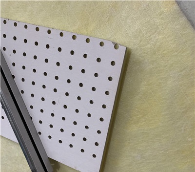 本厂专业生产厚度8mm穿孔石膏板/8.5mm穿孔石膏板/9mm穿孔石膏板/9.5mm穿孔石膏板/10mm穿孔石膏板/12mm穿孔石膏板产品尺寸:1200*2400、1200*2700、1200*3000mm,可定做其它尺寸石膏板穿孔后,石膏板上的小孔与石膏板自身及原建筑结构的面层形成了共振腔体,声音与穿孔石膏板发生作用后,圆孔处的空气柱产生强烈的共振,空气分子与石膏板孔壁剧烈摩擦,从而大量地消耗声音能量,进行吸声。这是穿孔纸面石膏板“亥姆霍兹共振”吸声的基本原理。穿孔纸面石膏板吸声对声音频率具有一定选择性,吸声频率特性曲线呈山峰形,当声音频率与共振频率接近时,吸声系数大;当声音频率远离共振频率时,吸声系数小。如果在纸面穿孔石膏板背覆一层桑皮纸或薄吸声毡时,空气分子在共振时的摩擦阻力增大,各个频率的吸声性能都将有明显提高,这就是人们常常在穿孔纸面石膏板后覆一层桑皮纸或薄吸声毡增加吸声的原因。