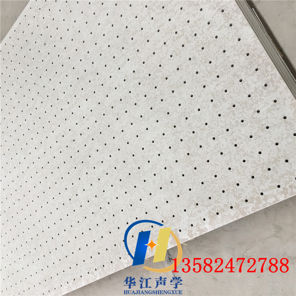 2)产品性质与用途。由于板面穿孔,能吸收声波能量。通过不同孔径、孔距、穿孔率及孔腔的组合能有效调整室内混响时间,对低频声波的吸收尤为显著。特殊配方、特制基材,能满足强度要求。孔形多样、组合丰富,可根据吸声及装饰需要进行不同选择。采用干法作业,工期短,施工便捷,经济高效。饰面工序简易,可直接滚涂涂料。